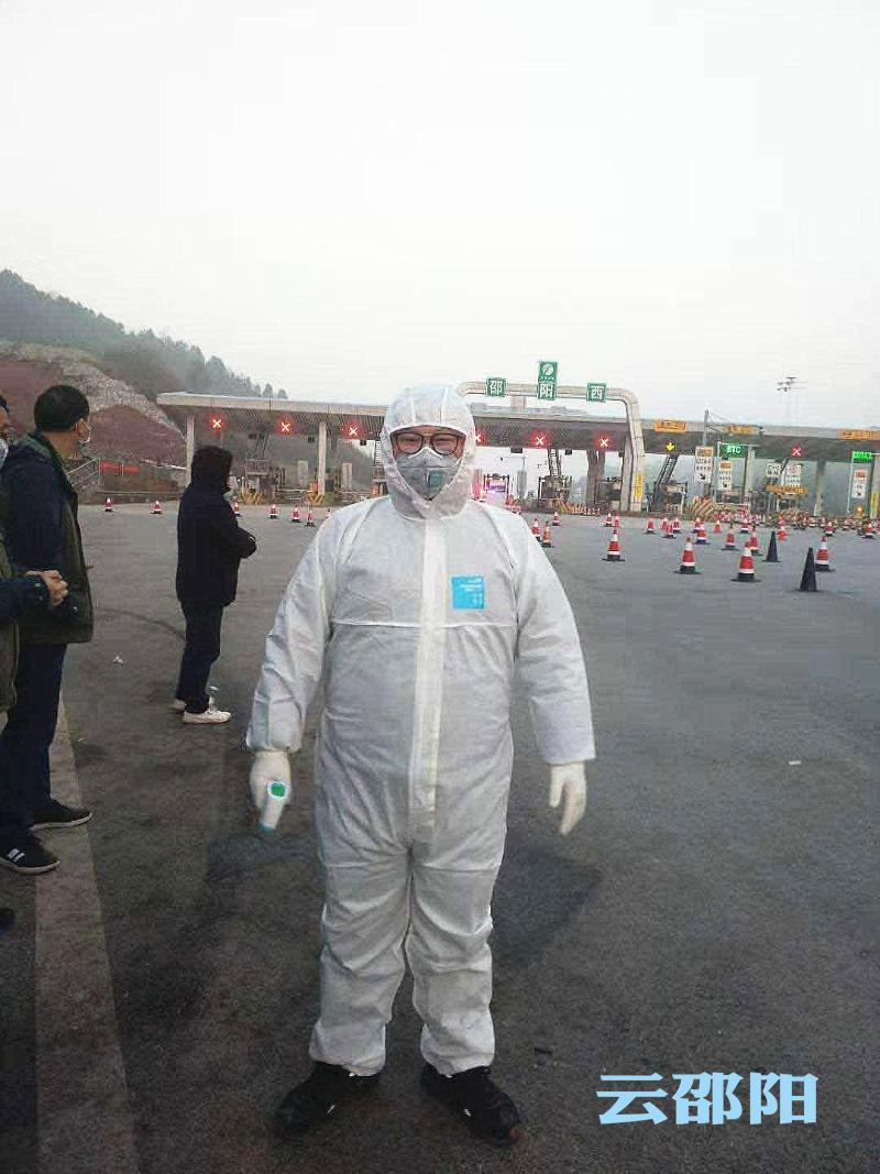 姜柳旭在二广高速邵阳西收费站疫情监测点