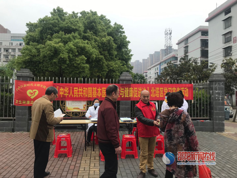 邵阳新闻在线讯(通讯员 禹长贵 刘繁慧)4月24日,北塔区卫健局组织疾控中心和状元洲社区卫生服务中心的医务人员和新时代文明实践志愿者在资园社区资园路口开展《中华人民共和国基本医疗卫生与健康促进法》和《中华人民共和国职业病防治法》宣传服务活动。