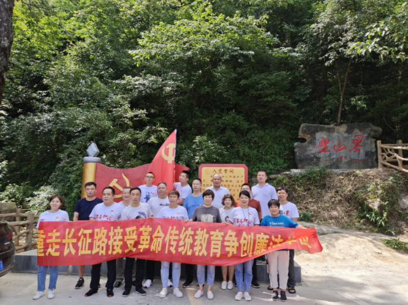 在老山界石碑和红军雕塑群前,该区卫健系统全体党员思绪万千,忆往昔峥嵘岁月,思今日幸福生活来之不易,并在石碑的党旗下留影纪念,以激励自己努力践初心、担使命,正品行。
