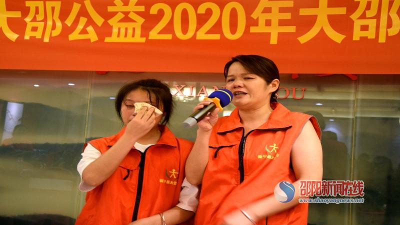 学子代表杨同学讲述了自己不幸的经历和在大学学习、成长的过程。她动情地说:“因失去父亲,我一度陷入痛苦和绝望,也变得自卑、胆小而沉默,是新宁大邵公益的志愿者叔叔阿姨以及爱心人士唐峰叔叔长期的陪伴和资助才使我走到了今天,没有你们的关爱和支持,就没有我的今天。”杨同学目前已是一名师范大三学生,即将进入大四。如今的她阳光开朗,在学校努力学习,广交朋友,积极参加各种知识竞赛、社团和志愿服务活动,不断提升自己的综合素质和能力,是学校优秀学生,