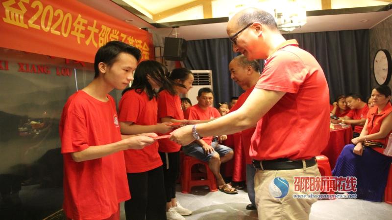 最后,新宁大邵公益为爱心人士颁发了荣誉证书,赠送了感谢礼物,为到场的今年考上大学的3名困境学子发放了奖励金,为22名参加茶话会的学子赠送了书包。