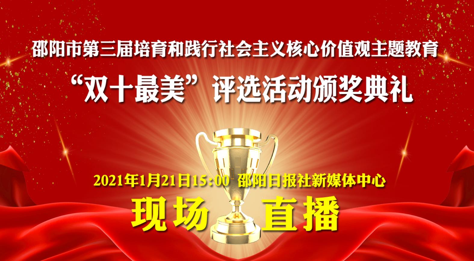 为了更好地记录创文路上伟大而平凡的“最美”你我,由邵阳市精神文明建设指导委员会、中共邵阳市委宣传部、邵阳市创建全国文明城市工作指挥部办公室主办的邵阳市第三届培育和践行社会主义核心价值观主题教育“双十最美”评选活动颁奖典礼于1月21日在邵阳市委礼堂举行。当天将展示邵阳“最美”的创文工作成果,感受全市人民万众一心,团结进取,积极向上,奔向“最美”的决心!