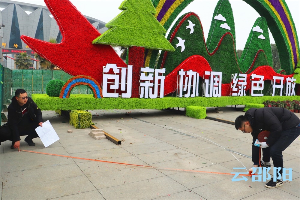 当天,市区世纪大道东互通,数名工作人员正依据施工图纸,对大型摆花进行精细设计。已完工的大型绿雕上,“新年快乐”“牛年大吉”等字样分外醒目,传递出浓浓年味。该处摆花施工负责人刘解民说,摆花布置工作于1月中旬启动,现已完成绿雕安装、鲜花采购等主要工作,剩余鲜花摆放作业可在2月1日前完成。
