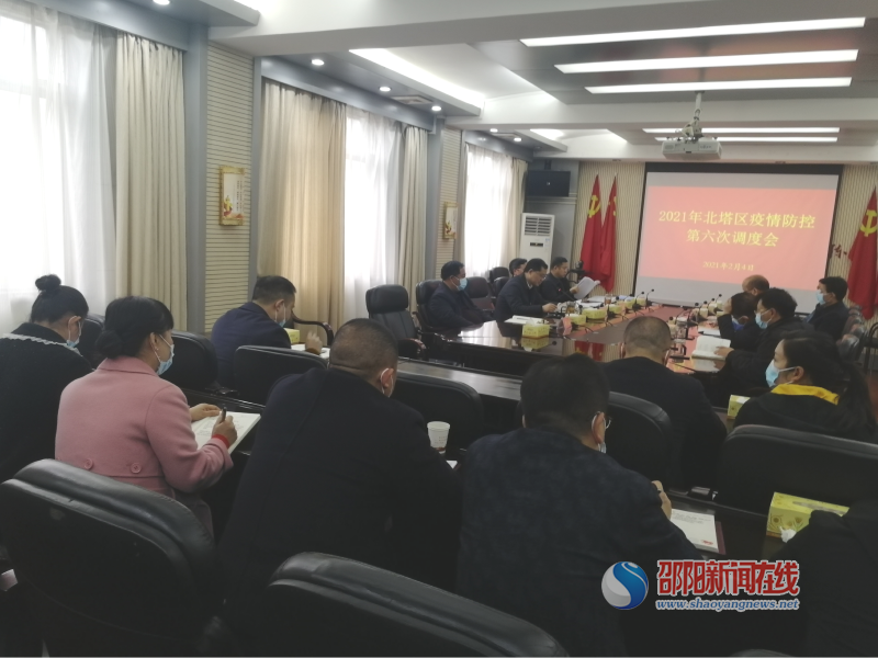 邵阳新闻在线讯(通讯员 禹长贵)2月4日上午,北塔区委书记肖平在区委4楼常委会议室参加2021年北塔区新冠肺炎疫情防控第6次调度会。区委副书记、区长刘贻银主持会议,区领导邓政、陈名洋、罗颢、黄正佑、李仁明、王永红及各乡办党政负责人和区疫情防控领导小组成员单位相关负责人参加会议。