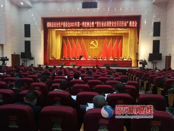 邵阳新闻在线讯(通讯员 吴小刚)2月26日下午,邵阳县安全生产委员会2021年第一季度例会暨“管行业必须管安全百日行动”推进大会在县委大礼堂召开。邵阳市政协副主席、邵阳县委书记蒋伟出席会议并讲话,县委副书记、县长、县安委会主任袁玉华就全县推进“管行业必须管安全百日行动”工作作出要求,县委常委、常务副县长、县安委会常务副主任周玉祥在会上传达贯彻当日上午全国两会安全防范工作视频会议精神并主持。