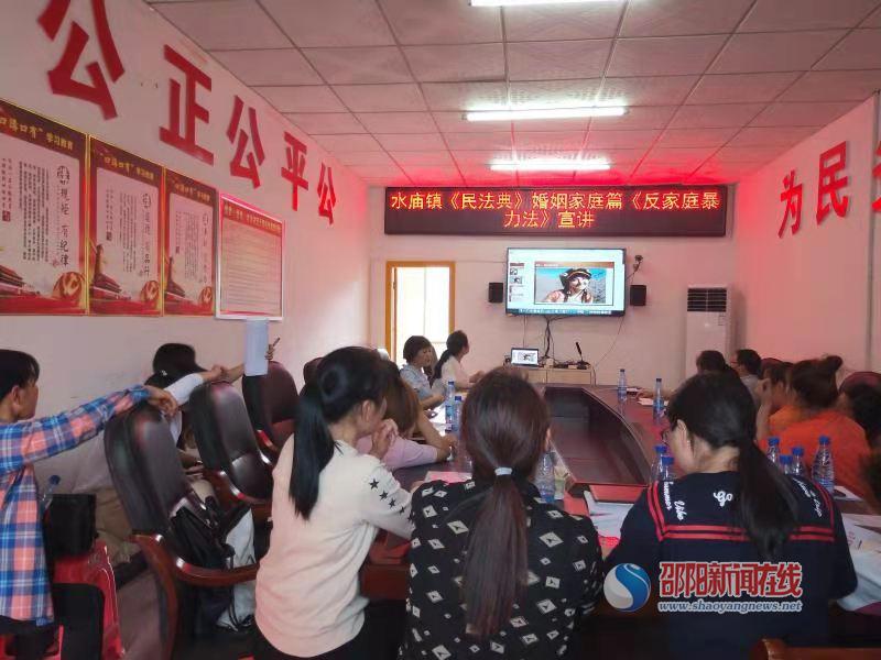 邵阳新闻在线讯(通讯员 张良瑜 陈孝林 杨小池)5月10日,新宁县司法局联合县妇联、湖南崀山律师事务所在新宁县水庙镇政府开展“我为群众办实事”法润三湘法律宣讲活动暨《中华人民共和国反家庭暴力法》专题讲座,各村妇女主任及村民代表积极参加了本次活动。