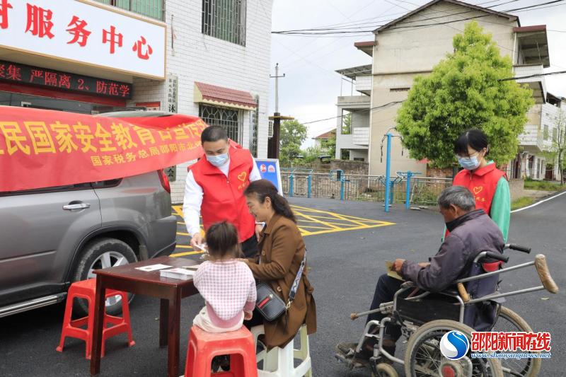 邵阳新闻在线讯(通讯员 雷茜)为进一步提高群众的国家安全意识,4月13日,在第七个全民国家安全教育日来临之际,国家税务总局邵阳市北塔区税务局组织志愿宣传小队到联点村沐三村开展“4·15”全民国家安全教育日宣传活动。