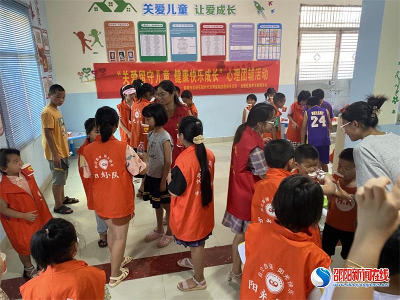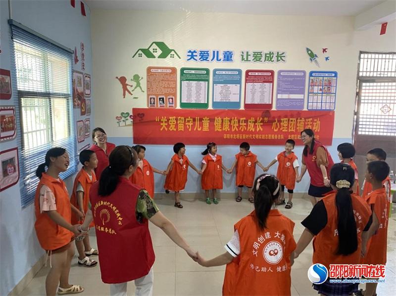 邵阳新闻在线讯(通讯员 海琳 罗新娥 张铁梅)7月25日,邵阳市北塔区新时代文明实践志愿服务总队的助学支教服务社12名志愿者到北塔区陈家桥镇李子塘村,开展以“关爱留守儿童健康快乐成长”为主题的关爱留守儿童、困境儿童心理团辅活动。参加活动儿童有40余人,分别来自陈家桥李子塘周边学校。