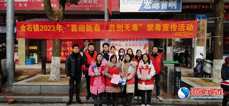 邵阳新闻在线讯(通讯员 戴红卫 银荷媚)连日来,新宁县金石镇禁毒办联合金石镇司法所、工会、团委、妇联等部门开展主题“喜迎新春 共创无毒”禁毒宣传活动。