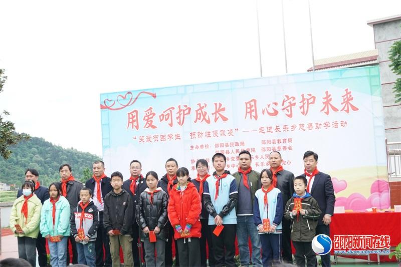 邵阳新闻在线讯(通讯员 易玉梅 邓晶)4月24日,邵阳县人民检察院联合县民政局、县教育局、县慈善会来到长乐乡中心完全小学开展“用爱呵护成长 用心守护未来”慈善助学和法治宣传教育活动。