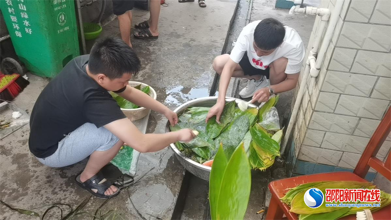 金江乡新时代文明实践志愿服务队提前准备好了粽叶、五花肉、糯米等食材。活动当天,志愿者与居民群众齐动手、共参与,一同撸起了袖子包粽子,大家挑粽叶、装粽米、扎红绳。
