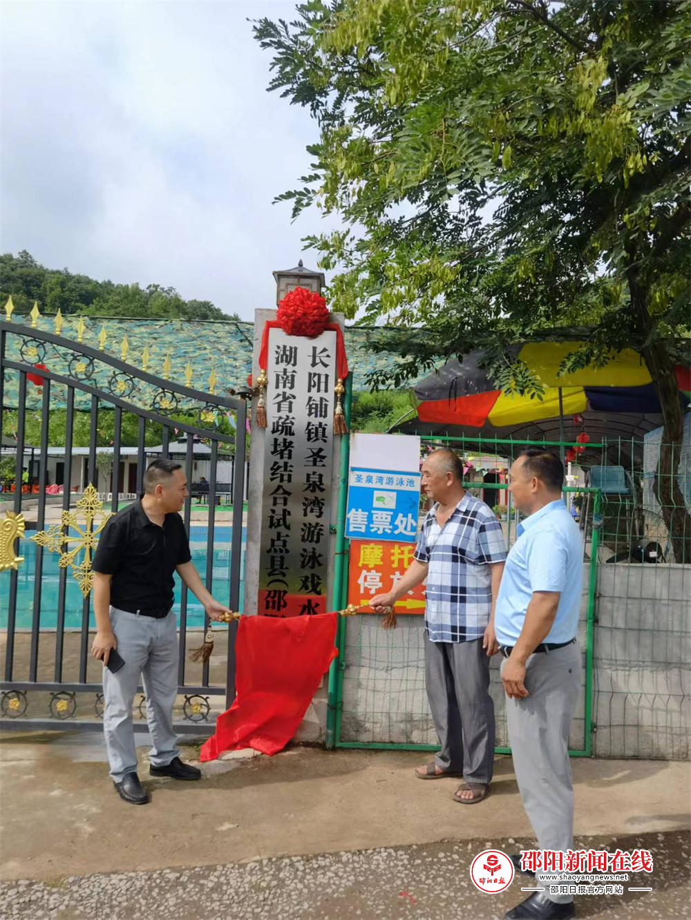 邵阳日报·邵阳新闻在线讯(通讯员 徐笑笑 胡梦香)为进一步做好防溺水工作,邵阳县长阳铺镇融合社会资本,在长阳铺村依托地势搭建了一个室外游泳场所——圣泉湾游泳馆。7月19日,圣泉湾游泳馆正式挂牌“湖南省疏堵结合试点县(邵阳县)长阳铺镇圣泉湾游泳戏水场所”。
