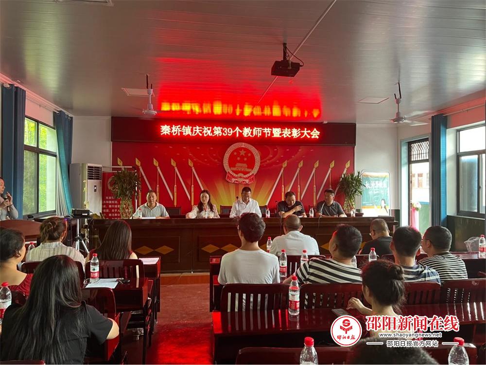 邵阳新闻在线讯 (通讯员 王娟)9月8日下午,武冈市秦桥镇隆重举行第39个教师节表彰大会。秦桥镇党委书记张强武,人大主席曾江波,副镇长蒋志慧,中心学校党总支书记、校长李志军,副书记马北平,秦桥镇全体教师参加会议。