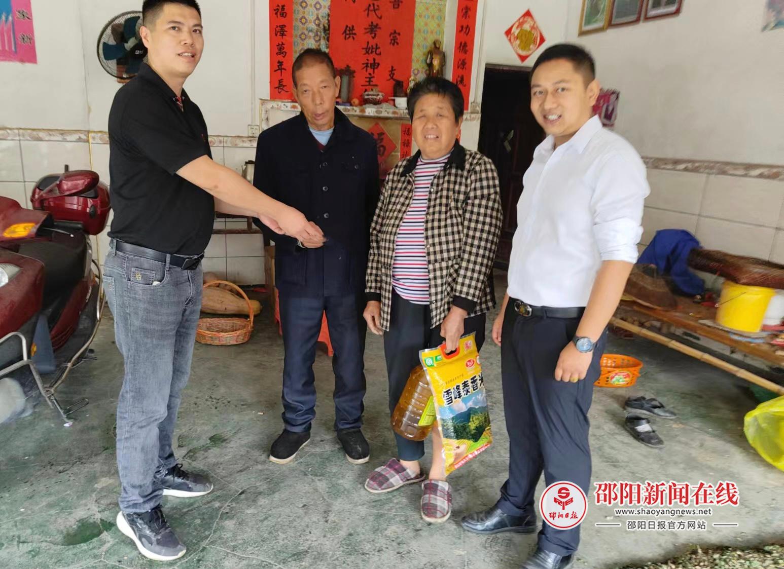 县红十字会常务副会长曾少华、县卫健局老龄健康股负责人、中国人寿洞口支公司相关负责同志参加活动。曾少华一行先后来到毓兰、花园、高沙等乡镇督导了老年险的推进工作,同时为特困老人们送去了“敬老月”的关爱。每到一处他们都会详细了解老人们的生活状况、身体情况,叮嘱老人一定要爱护身体、注意健康,并为老人送上大米、植物油、牛奶等慰问品。