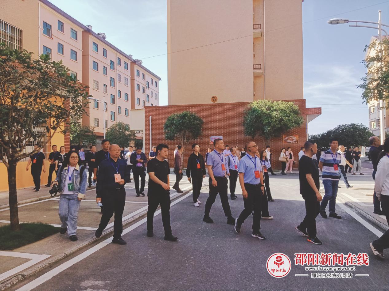 11月2日下午,来自全省各地参会人员汇聚武冈市湾头桥镇集中安置点,参观学习武冈易地搬迁安置(两区共建示范)成功建设经验。