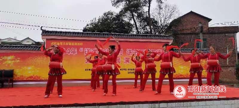 为落实好中宣部、省委宣传部和文化旅游部关于元旦、春节期间下基层文艺惠民演出的有关通知精神。武冈市精心组织2024"送戏曲进万村"、"送书画进万家"文艺惠民活动,以武冈丝弦传统文化节目为主,加上浓郁的乡镇地方特色文化节目,深入各乡村进行文化惠民演出,并邀请武冈市书法协会部分书法老师现场挥毫泼墨书写春联、"福"字等免费赠送给村民,为他们送去节日的欢乐。