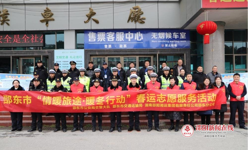 邵阳日报·邵阳新闻在线讯(通讯员 赵璧煜)为认真做好2024年春运志愿服务相关工作,切实为广大群众提供“安全、畅通、有序、温馨”的出行服务,2月27日下午,邵东市公安局交警大队联合邵东市交通运输局、湖南邵阳湘运集团有限责任公司邵东分公司,深入辖区汽车西站开展平安春运“情满旅途·暖冬行动”志愿服务活动。