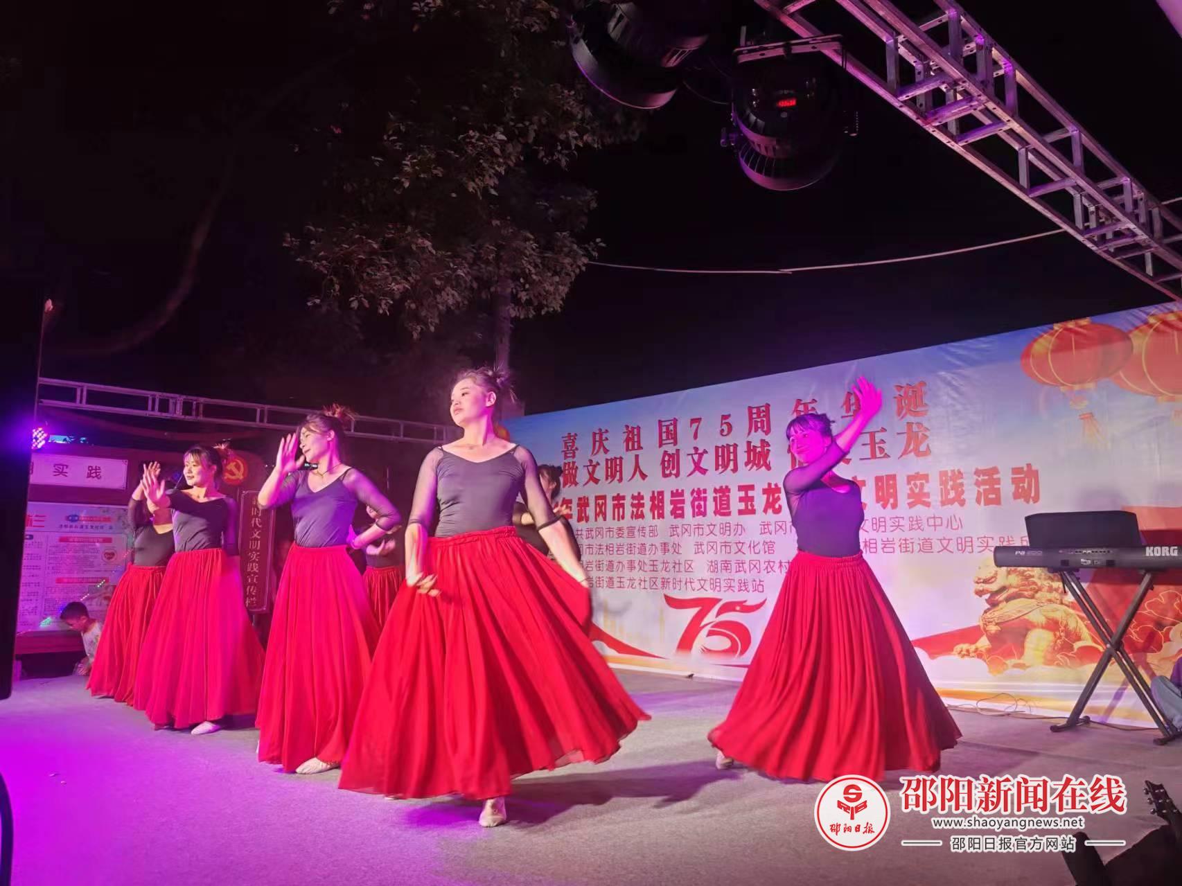 邵阳日报·邵阳新闻在线讯(通讯员 郭骏 罗建锋 李彬)近日,武冈市法相岩街道玉龙社区依托新时代文明实践站举办了“做文明人·创文明城·情暖玉龙”文明实践文艺晚会,在丰富居民文化生活的同时,营造了喜庆祥和的国庆节日氛围,更是不断传播文明理念。