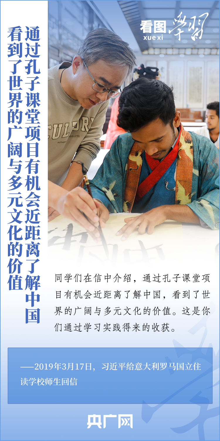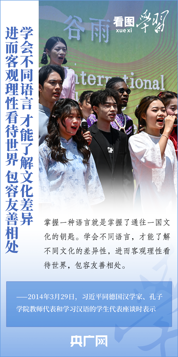 文明因交流而多彩,因互鉴而丰富。“掌握一种语言就是掌握了通往一国文化的钥匙”“学习中文可以更好了解中国”“推进中国同世界各国人文交流、促进多元多彩的世界文明发展”……近年来,“中文热”“汉学热”在世界范围内持续升温,习近平主席在出席外事活动或者给研习中文的外国师生回信时,鼓励世界各地的汉语爱好者通过中文学习和人文交流,促进多元文化文明互学互鉴,为携手构建人类命运共同体贡献力量。