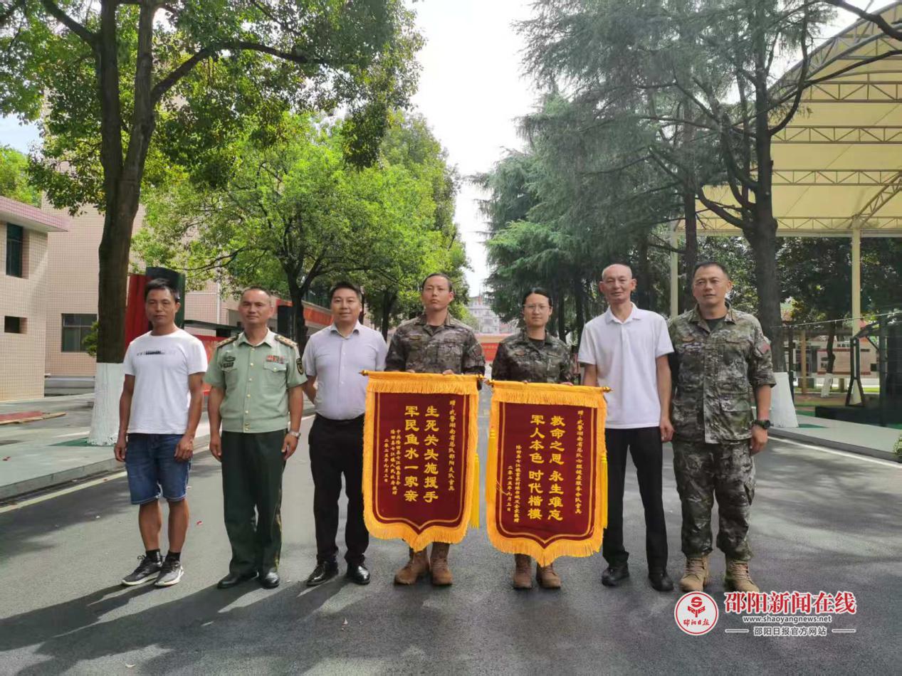 邵阳日报·邵阳新闻在线讯(通讯员 王修远)9月4日上午,隆回县七江镇镇长罗建华与富家村村民家属代表专程来到武警邵阳支队驻地,分别将两面印有“生死关头施援手,军民鱼水一家亲”“救命之恩永生难忘,军人本色时代楷模”的锦旗送到武警部队官兵手中,感谢他们成功救下一名七江镇富家村的轻生女子。
