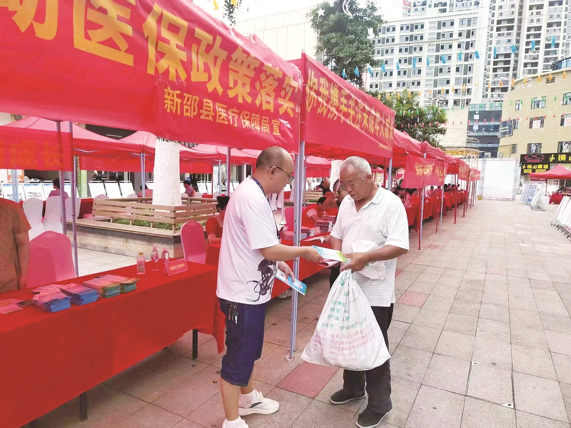 ◀新邵县医保局开展医保政策集中宣传活动。