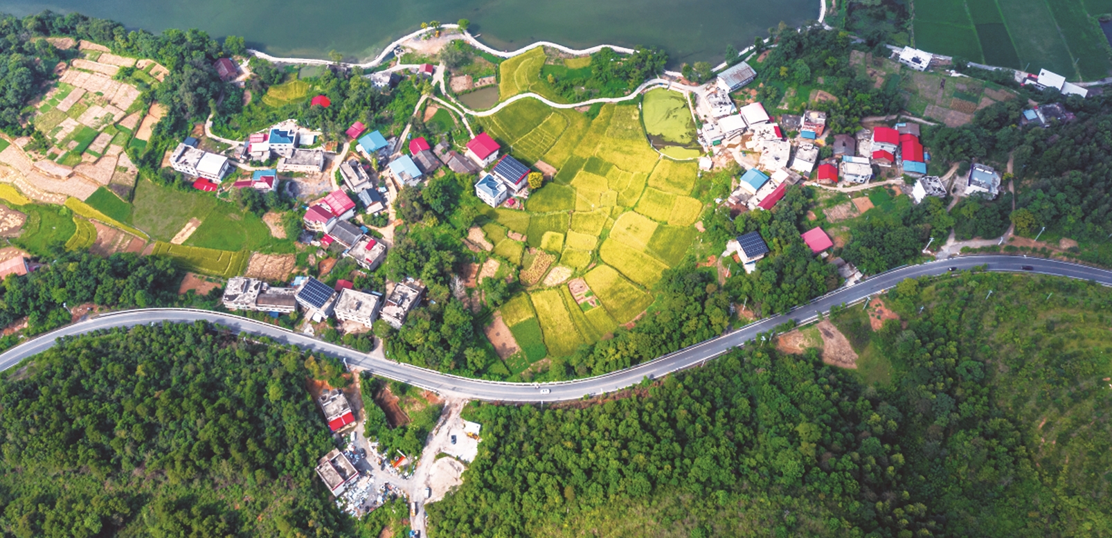 一条蜿蜒的农村公路如丝带般穿行于邵阳县的山水田园间,串联起错落的村落与葱郁的林海。 (邵阳县委宣传部供图)