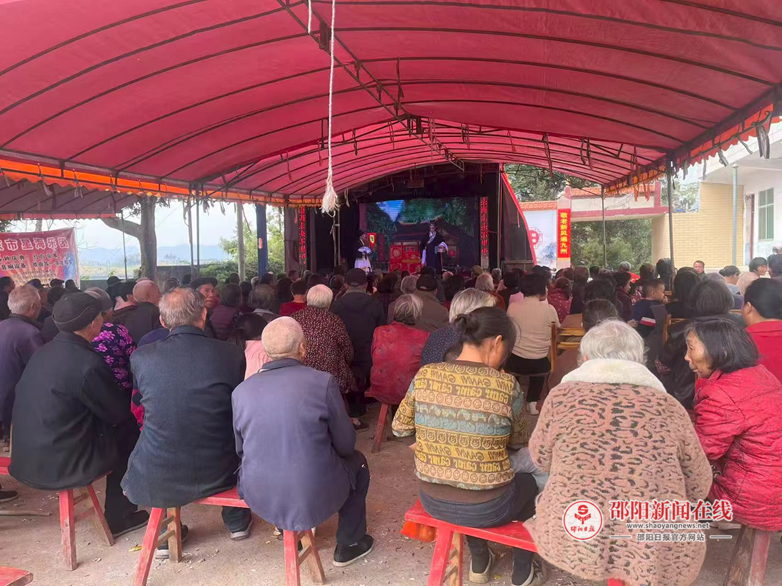 传统节日向来是拉近邻里距离、凝聚村民共识的重要契机。此次重阳节文化汇演,从前期筹备到现场组织,处处可见热心村民的身影:志愿者提前一周筹措乡贤捐款,积极对接乡文化站与本地戏曲剧团,精心挑选符合村民口味的湘剧、花鼓戏选段;以袁玉田老师为代表的志愿者们则主动承担场地布置、秩序维护与后勤保障工作,确保活动全程安全有序。“以前过节就是家人小聚,今年村里搭起这么大的戏台,还有志愿者专门来接我,心里比吃了蜜还甜!”82岁的李奶奶握着志愿者的手,笑得格外开怀。正逢重阳节满八十岁生日的赵光荣老人也难掩喜悦:“我今天特别高兴,能健康快乐地活到八十岁,还能和大家一起看演出,心情特别好。”