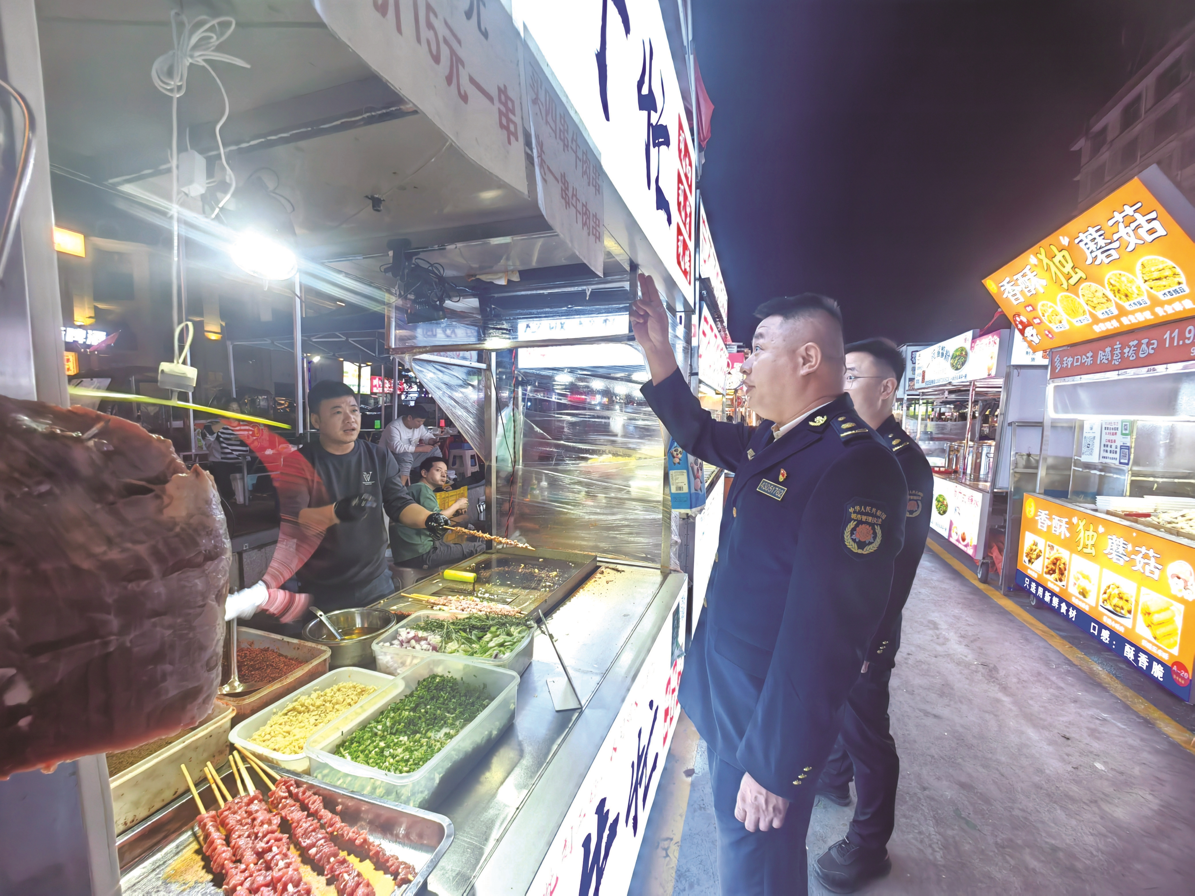 肖前安介绍,每晚他们都会组织执法人员前往宝庆夜市开展二至三次巡查,重点对各摊位瓶装液化石油气的使用安全进行巡查,从源头上消除安全隐患。与此同时,加强对烧烤油烟排放的监管力度,一旦发现油烟排放超标,立即督促摊主安装油烟净化器,以此减少油烟对周边居民的影响,共同营造干净、舒适、安全的城市夜间环境,实现“烟火气”与“文明范”的有机融合。