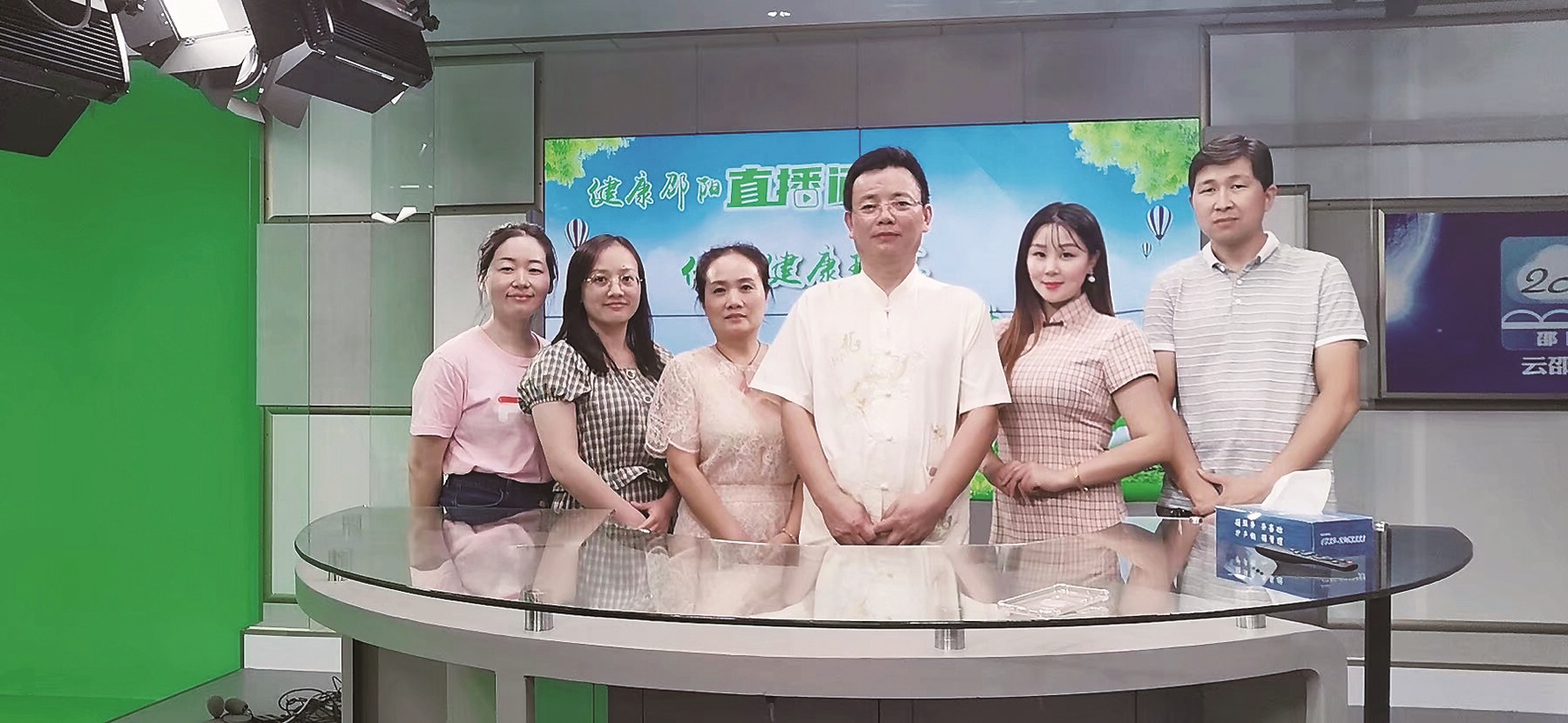“健康邵阳”直播结束后,主持人陈红云(右二)和嘉宾留影。