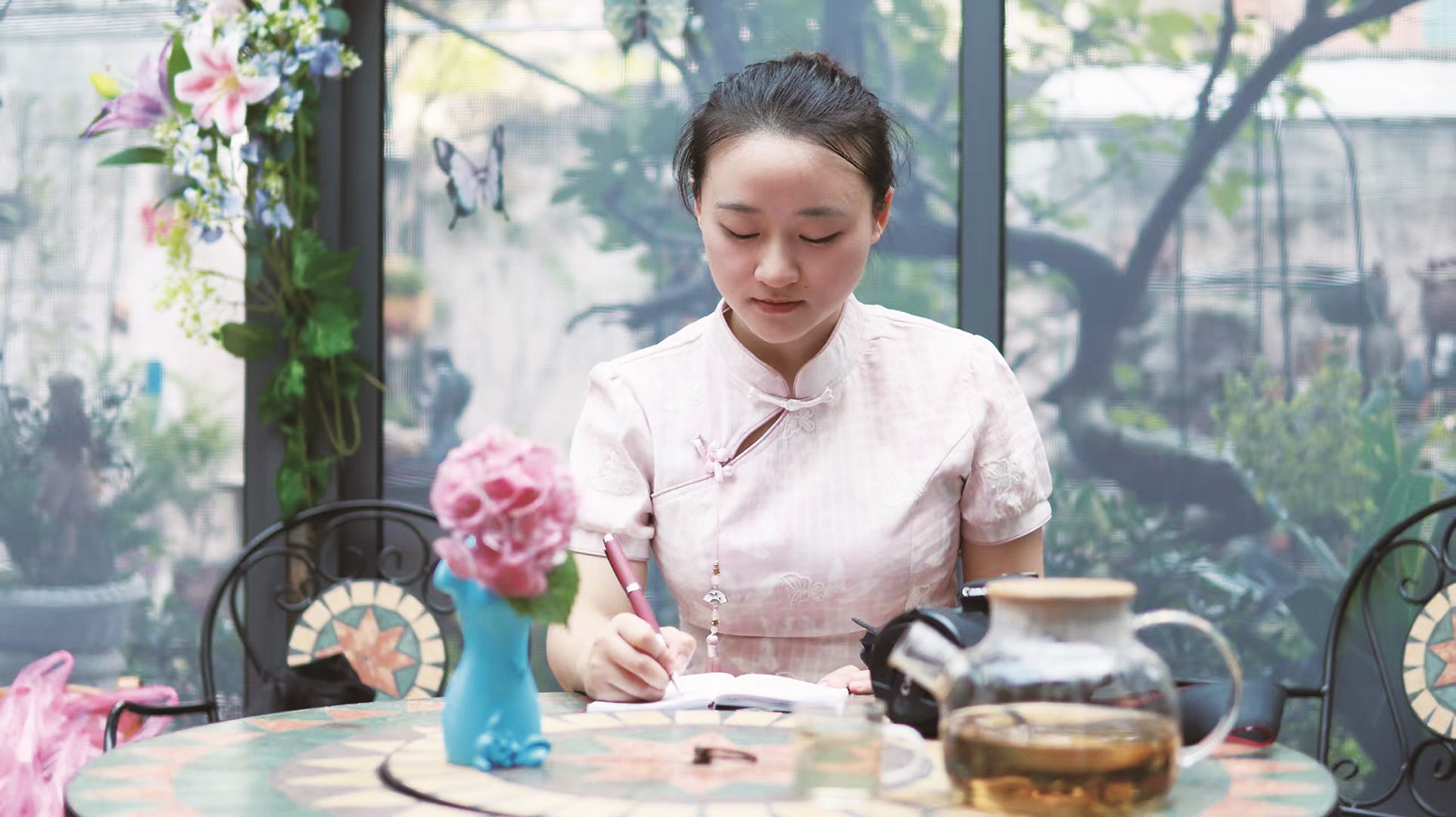 蒋玲慧在撰写访谈记录。
