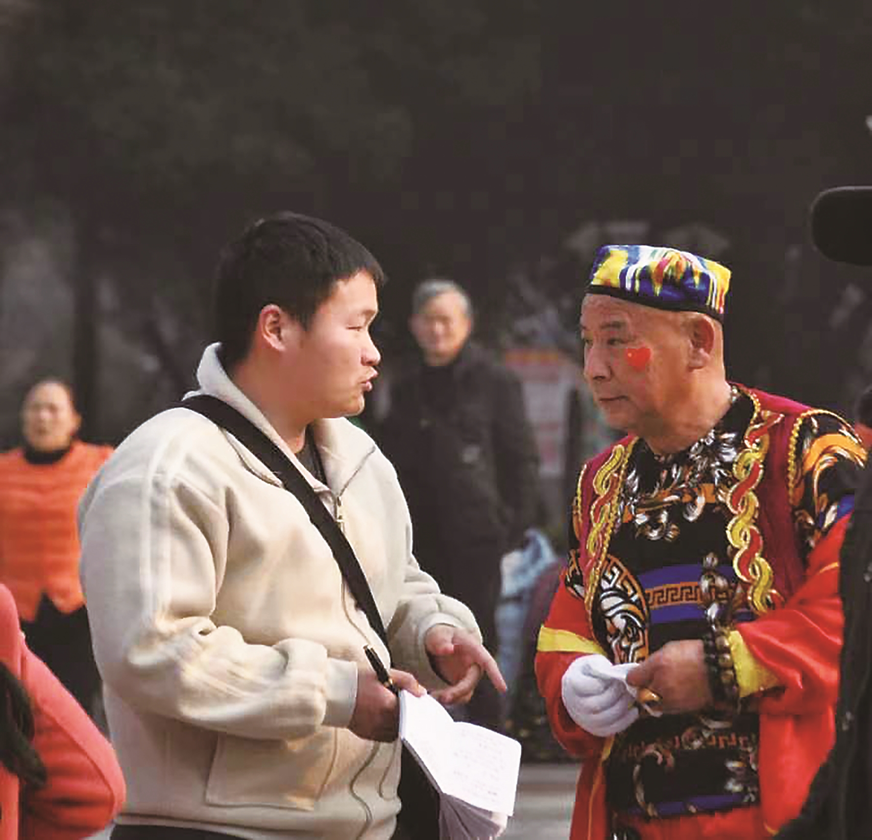 王朝帅(左)深入现场采访。