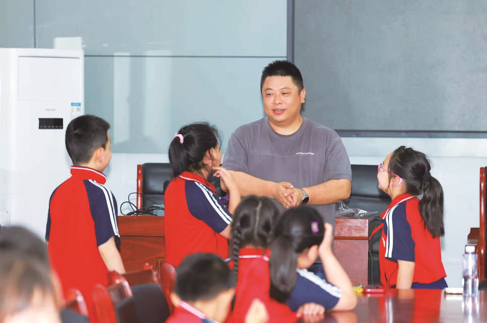 李超为小记者讲述新闻采访技巧。
