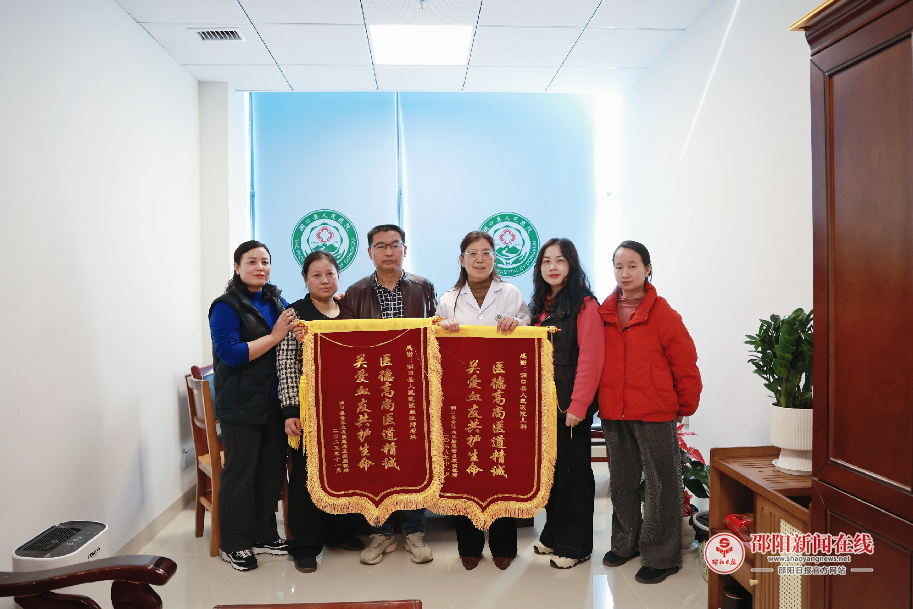 邵阳日报·邵阳新闻在线讯(通讯员 龙莉平 陈赞赞)11月13日上午,洞口县血友病患儿母亲李女士(化名)等人,将两面鲜红的锦旗送到县人民医院院长助理杨恢才和儿科主任陈赞赞手中。这温情的一幕,既是对儿科和血液肿瘤科医护人员的由衷致谢,更印证了该院“大病不出县”建设在血友病诊疗领域的扎实成效。