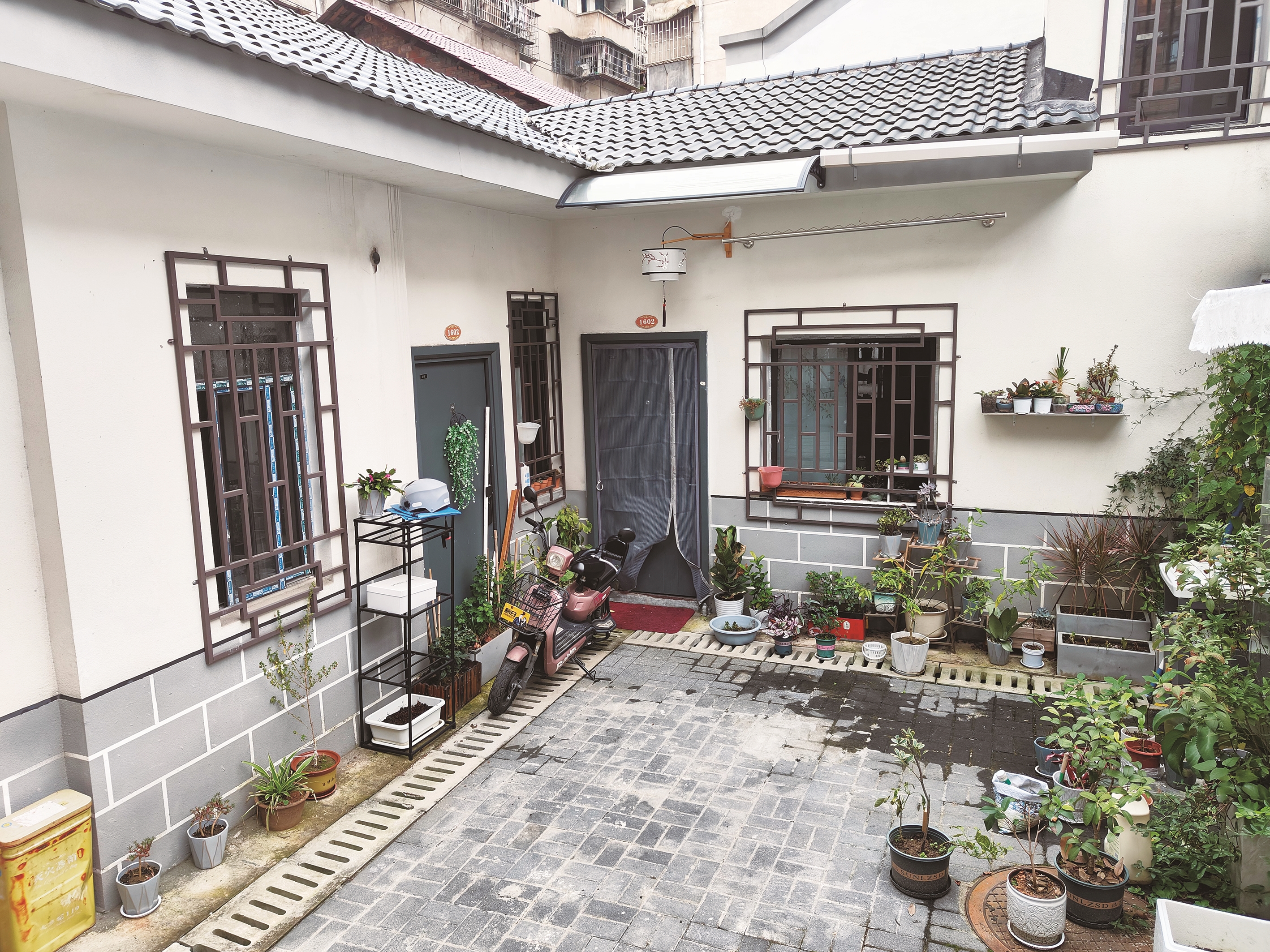 ▲临津门直管公房片区改造后,居民精心打造的院落一角。陈贻贵 摄